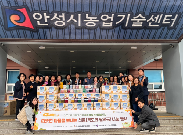 전달식은 안성시농업기술센터에서 농촌 여성농업인으로 구성된 한국생활개선회 안성시연합회 임원들과 안성시노인복지관 직원들이 함께했다.