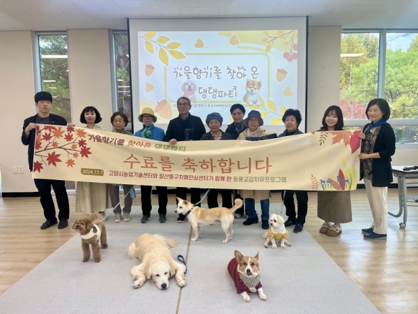 [금요저널] 고양특례시 일산동구보건소 치매안심센터는 동물교감 치료를 적용한 인지강화교실‘가을향기를 찾아온 댕댕파티’를 지난 1일 성황리에 종료했다고 밝혔다.