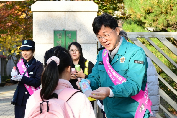 이민근 시장은 지난달 24일 이호초등학교에 이어 지난 5일 별망초등학교에서 진행된 캠페인에 참여해 ‘일단 멈춤, 아이 먼저 보내주세요’라는 어깨띠를 걸고 피켓, 홍보 물품 등을 활용해 적극적인 홍보 활동을 펼쳤다.