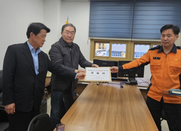 장항동 기업인협의회 이용남 회장과 장항1동 안전보안관 이근종 대표는 “오늘 청원서를 전달한 것은 비상소화장치 설치를 찬성하는 주민의 목소리를 전달할 수 있는 의미가 깊은 시간이었다 향후 비상소화장치가 꼭 설치되어 대형화재 예방에 보탬이 되길 바란다”고 밝혔다.