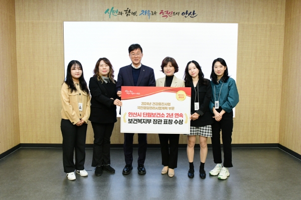 [금요저널] 안산시 단원보건소는 지난 6일 보건복지부 주관 ‘2024년 건강증진사업 성과대회’에서 국민영양관리시행계획부문 우수기관으로 선정돼 2년 연속 복지부 장관 표창을 수상했다고 7일 밝혔다.