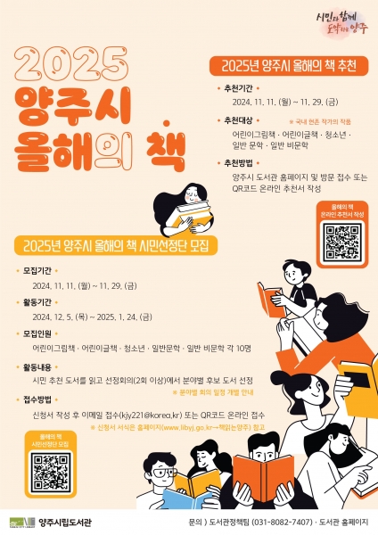 양주시, 2025년‘올해의 책’도서 추천 및 시민선정단 모집