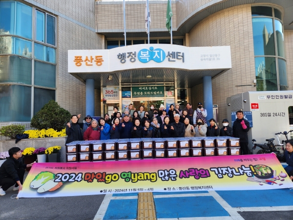 [금요저널]고양특례시 일산동구 풍산동은 지난 11월 5일부터 6일까지 이틀에 걸쳐 풍산동 행정복지센터에서 ‘2024년 맛있GO, 영YANG 많은 사랑의 김장나눔’ 행사를 진행했다고 밝혔다.