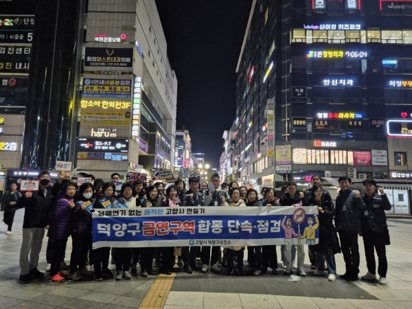 [금요저널] 고양특례시 덕양구보건소는 금연 환경 조성과 간접흡연 폐해 예방을 위해 지난 6일 금연구역 야간합동점검을 실시했다고 밝혔다.