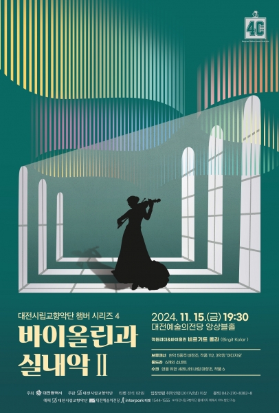 [금요저널] 대전시립교향악단은 11월 15일 저녁 7시 30분, 대전예술의전당 앙상블홀에서 ‘챔버 시리즈 4 바이올린과 실내악 Ⅱ’를 선보인다.