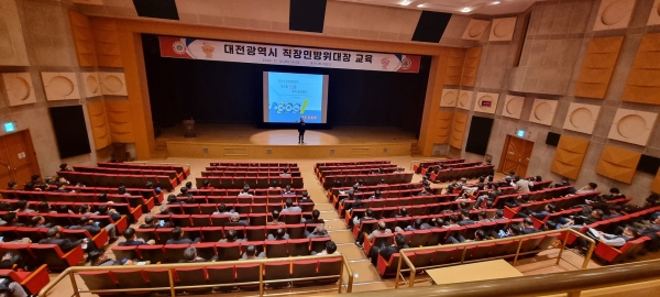 [금요저널] 대전시는 12일 오후 오후 2시부터 오후 6시까지 직장민방위대장의 평시 재난안전사고 및 민방위사태 발생을 대비해 시청 대강당에서 ‘2024년 직장민방위대장 교육’을 진행했다.