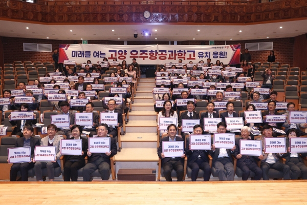 행사에는 한국항공대학교 허희영 총장과 고양교육지원청 고효순 교육장이 참석해 고양 우주항공과학고 설립을 기원하며 ‘미래를 여는 고양 우주항공과학고'라는 플래카드를 들고 응원의 메시지를 전했다.