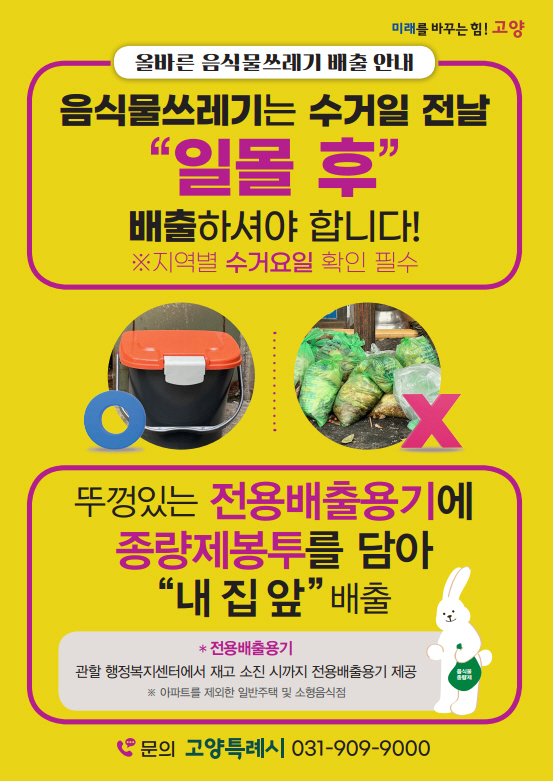 [금요저널] 고양특례시는 시민들이 음식물쓰레기 배출방법을 쉽게 이해하고 실천할 수 있도록 적극적인 홍보에 나선다고 밝혔다.