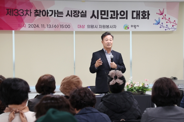 [금요저널] 의왕시는 13일 고천동 주민센터 자원봉사센터 교육장에서 ‘제33차 찾아가는 시장실’을 개최해 자원봉사자들과 소통의 장을 마련했다.