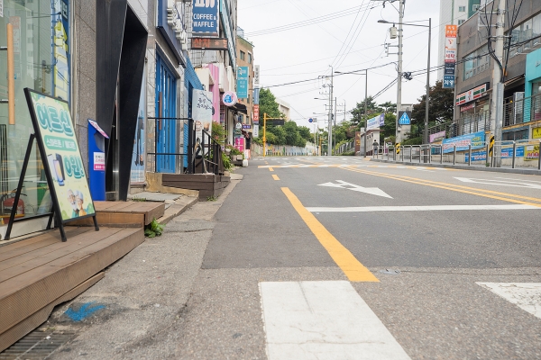 해당 지역은 아파트 단지 등 주택이 밀집돼 있고 마을버스 등 차량 통행과 보행자 유동 인구가 많으나, 인도와 차도 구분이 없고 도로변 불법 주·정차로 인해 보행 불편 민원이 지속 제기되어 왔다.