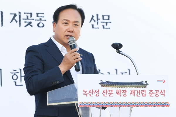 이권재 시장은 기념사에서 “매년 5만명 이상 방문하는 독산성 산문이 비좁아 방문객은 물론, 화재 대비에 취약하다는 목소리가 컸는데 공직자들과 함께 적극행정을 펼친 결과로 산문을 재건립하게 돼 감회가 새롭다”며 “독산성과 세마대지는 17km 오색둘레길과 연결되는 소중한 자산이다.