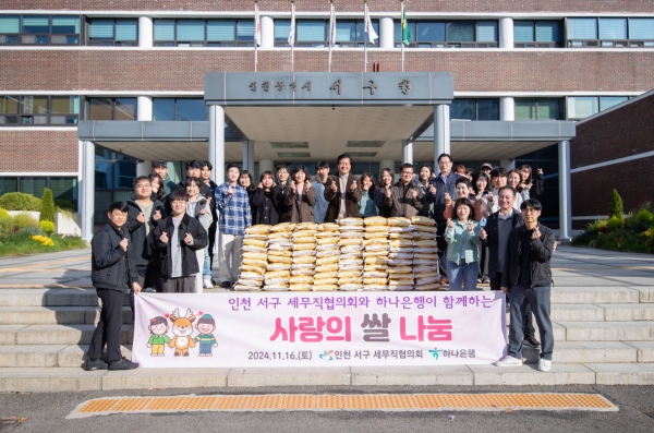 [금요저널] 인천 서구는 지난 11월 16일 하나은행 서구청지점의 후원으로 ‘사랑의 쌀 나눔’ 활동을 진행했다고 밝혔다.