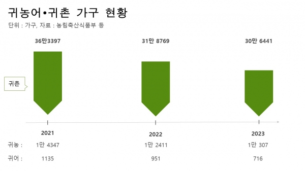 [금요저널] 지난 6월 농림축산식품부와 해양수산부·통계청이 발표한 ‘2023년 귀농어·귀촌인 통계’에 따르면 작년 귀농·귀촌 인구는 41만 3,773명으로 전년보다 5.5% 감소했다.