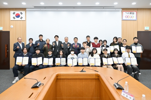 [금요저널] 포천시는 지난 19일 이대웅장학회가 포천시청 신관 2층 시정회의실에서 관내 중·고등학생과 대학생 15명을 대상으로 장학금 수여식을 개최했다고 전했다.