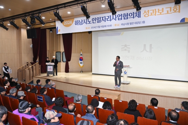 [금요저널] 하남시는 19일 별관 2층 대강당에서 주요 내빈과 하남시 노인일자리·사회활동 지원사업 참여자 총 300여명이 참석한 가운데 ‘2024년 노인일자리 성과보고회’를 개최했다.