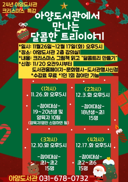 안성시 아양도서관, 2024년 크리스마스 특강 ‘달콤한 트리이야기’ 참가자 모집