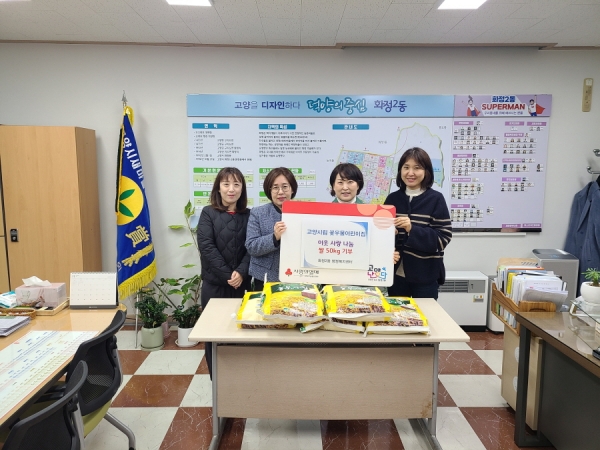 [금요저널] 고양특례시 덕양구 화정2동은 지난 20일 고양시립꽃우물어린이집에서 관내 어려운 이웃을 돕기 위해 쌀 50kg를 화정2동 행정복지센터에 기부했다고 밝혔다.