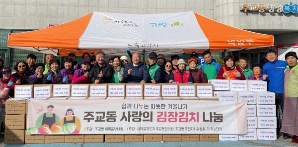 [금요저널] 고양특례시 덕양구 주교동은 ‘김치의 날’을 맞아 지난 18일 19일 이틀간 새마을부녀회 주관으로 ‘사랑의 김장 김치 나눔 행사’를 진행했다고 밝혔다.