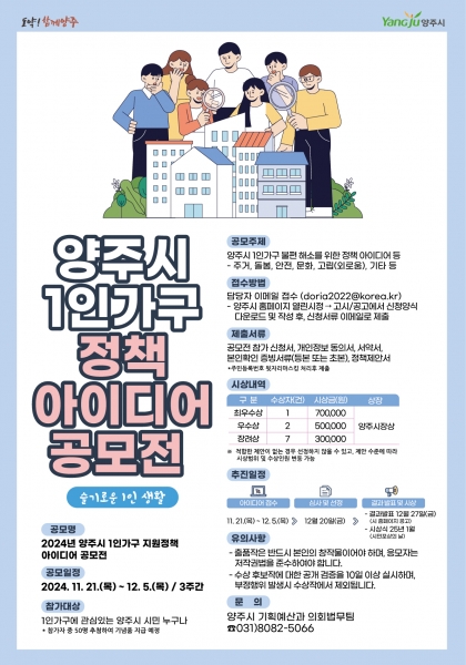 양주시, ‘1인 가구 지원 정책 아이디어 공모전’ 개최