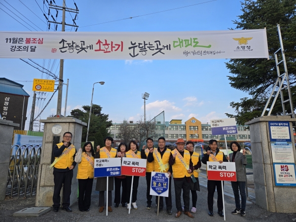 이날 캠페인에는 가산면 청소년지도협의회, 가산면 행정복지센터 관계자를 비롯해 경북중학교 교장 및 교장이 동참해 학생들에게 학교 폭력 근절과 안전한 학교 환경 조성의 중요성을 알렸다.