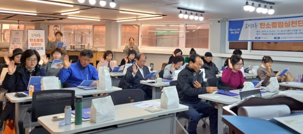 시는 소하2동 탄소중립형 도시재생사업 일환으로 소하2동 지역 시니어 대상 ‘탄소중립실천단 양성교육’을 진행했으며 교육 이수생 19명이 탄소중립실천단원으로 양성됐다.