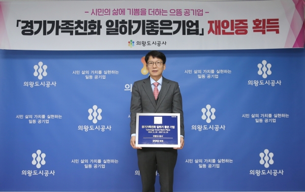 의왕도시공사는 2015년 11월 최초 인증 이후 4회 연속 재인증을 받으며 △가족친화경영에 대한 최고 경영층의 관심 및 실행의지 △고용 안정성 △가족친화제도 실행 사항 △가족친화제도에 대한 근로자 만족도 등에서 모범적 기업으로 인정받았다.