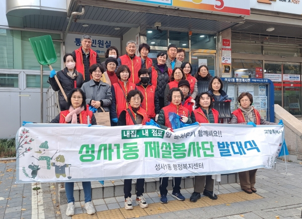 최숙 성사1동장은 “겨울철 주민의 불편을 최소화하고 안전을 위해 힘을 모아주시는 제설봉사대원 분들에게 항상 감사하다 제설작업 시 안전사고가 발생하지 않도록 각별히 유의해 주시길 바란다”고 당부했다.