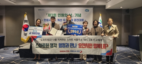 [금요저널] 오산시가 22일 경기도에서 개최한 2024년 민원서비스 개선 우수사례 경진대회에서 최우수상을 받았다.