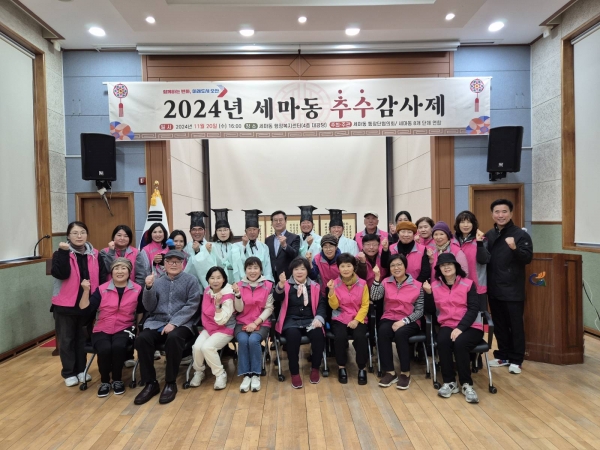 [금요저널] 오산시 세마동 통장단협의회는 세마동 8개 단체 연합 회원 및 세마동민 등 100여명과 함께 지난 20일 ‘2024년 세마동 추수감사제’행사를 실시했다.