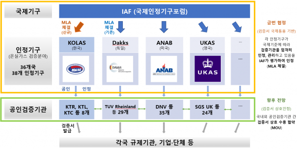 국표원 진종욱 원장은 “이번 협정 체결로 KOLAS 공인검증기관의 기술력과 신뢰성을 국제적으로 인정받게 됐다”며 “이를 통해 국내에서 발행된 탄소발자국 검증서가 해외에서도 통용될 수 있는 기반을 마련했다”고 평가했다.