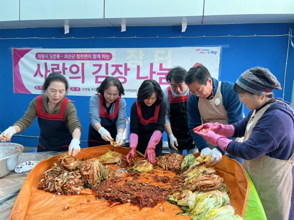 [금요저널] 의왕시 오전동 주민자치회는 지난 22일 괴산군 청천면 주민자치위원회와 함께 김장김치 나눔 봉사를 진행했다.
