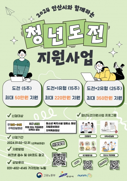이민근 안산시장은 “청년도전지원사업이 청년들의 사회 진출을 돕는 마중물이 되기를 바란다”며 “앞으로도 체계적인 프로그램 운영을 통해 청년들이 더 나은 미래를 설계할 수 있도록 지원하겠다”고 말했다.