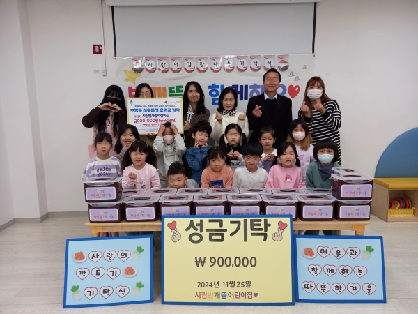 김성주 초평동장은 “추운 겨울 관내 취약계층을 위해 따뜻한 나눔을 실천해 주신 어린이집 원생과 교직원, 학부모님께 감사드린다”며 “아이들의 순수하고 따뜻한 마음이 담긴 성금과 사랑의 깍두기는 필요한 이웃에게 잘 전달하도록 하겠다”고 밝혔다.