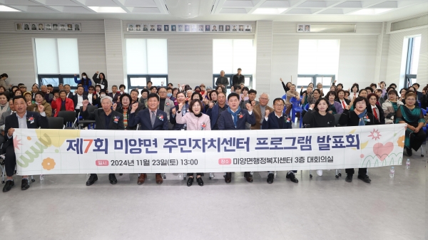 [금요저널] 지난 23일 미양면행정복지센터 3층 대회의실에서 관내 기관사회단체장, 수강생, 주민 등 200여명이 참석한 가운데, 제7회 미양면 주민자치센터 프로그램 발표회가 개최됐다.