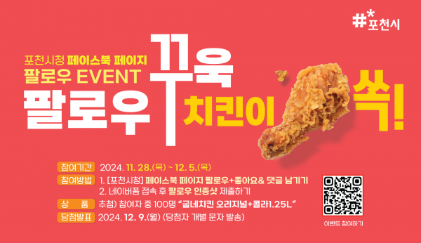 [금요저널] 포천시가 11월 28일부터 12월 5일까지 포천시 공식 사회관계망서비스 팔로우 이벤트를 진행한다.