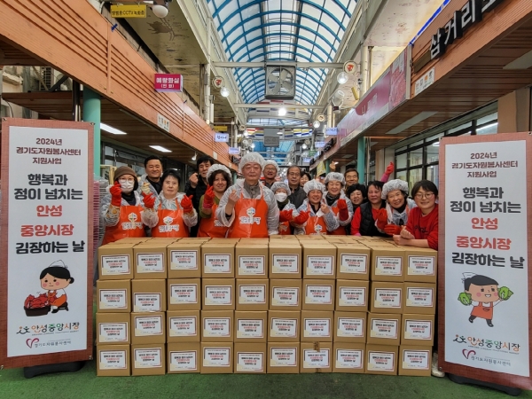 또한 시 관계자는 “어려운 경제 상황에도 안성중앙시장 상인들이 이웃 사랑 실천에 솔선수범해 주고 계셔 모범적인 사례로 생각하며 김장 나눔 행사에 참여해 주신 상인회 여러분께 진심으로 감사드린다”고 말했다.