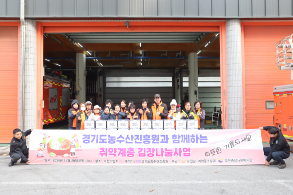 [금요저널] 포천여성의용소방대와 포천시종합사회복지관은 지난 11월 29일 포천소방서에서 김장 나눔 전달식을 진행했다.