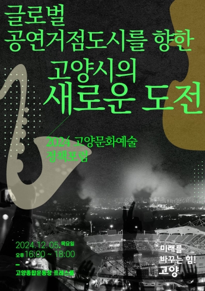 [금요저널] 고양특례시는 오는 12월 5일 오후 4시부터 6시까지 고양종합운동장 프레스룸에서 ‘2024 고양문화예술정책포럼’을 개최한다고 밝혔다.
