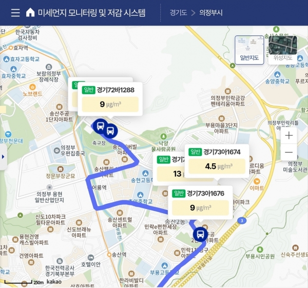 해당 차량은 민락동 차고지, 의정부역, 장암역, 도봉산역 등을 운행하며 미세먼지를 정화한다.