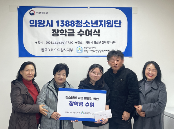 이번 장학금 수여식에서는 의왕시 청소년안전망 1388청소년지원단에 소속되어 있는 한국 B.B.S 의왕시지부가 관내 도움이 필요한 청소년 1명에게 장학금을 지원했다.