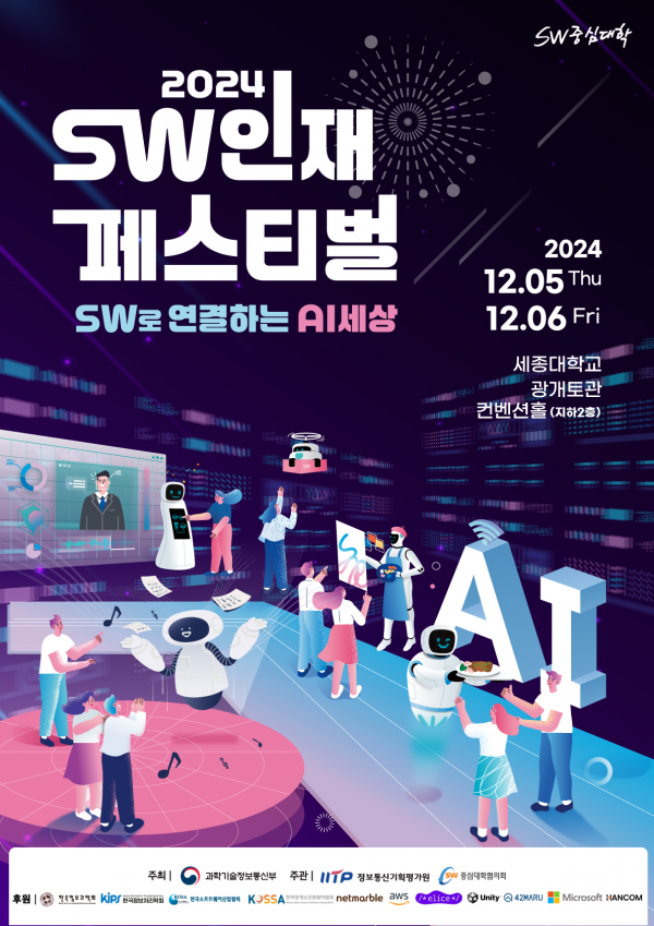 [금요저널] 과학기술정보통신부는 소프트웨어 인재 양성의 중요성을 알리고 소프트웨어 가치확산을 위해 12.5부터 12.6까지 ‘2024 소프트웨어 인재 축제’를 세종대 광개토관에서 개최한다.