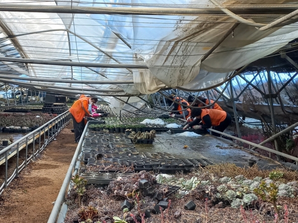 여기에 시는 경기도에서 지원한 12억 8천만원을 투입해 무너진 농가 하우스 및 축사 철거와 폐사 가축 처리, 장비 및 인력 투입을 우선 조치하는 등 하루 빠른 복구에 만전을 기하고 있다.