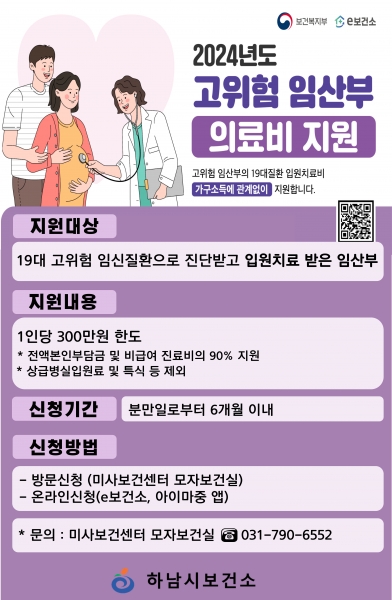 [금요저널] 하남시는 지난해까지 중위소득 180%이하 가구에 한정했던 ‘고위험 임산부 의료비 지원’ 이 올해부터 소득기준이 폐지됨에 따라, 보다 많은 임산부들이 혜택을 받을 수 있도록 사업 신청을 적극 독려하고 있다.