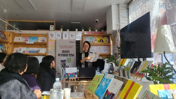 이날 조미자 작가와의 만남에서는 조미자 작가가 ‘불안’, ‘걱정 상자’, ‘슬픔에 빠진 나를 위해 똑 똑 똑’ 등의 감정 그림책을 중심으로 책을 만들게 된 계기와 그림책 속 그림의 의미를 설명하며 참가자들과 소통했다.
