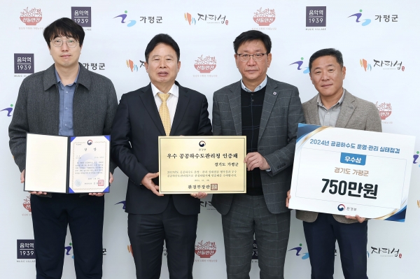 [금요저널] 가평군은 환경부로부터 공공하수도 운영관리 우수기관으로 선정돼 ‘우수 공공하수도관리청 인증패’를 받았다고 9일 밝혔다.