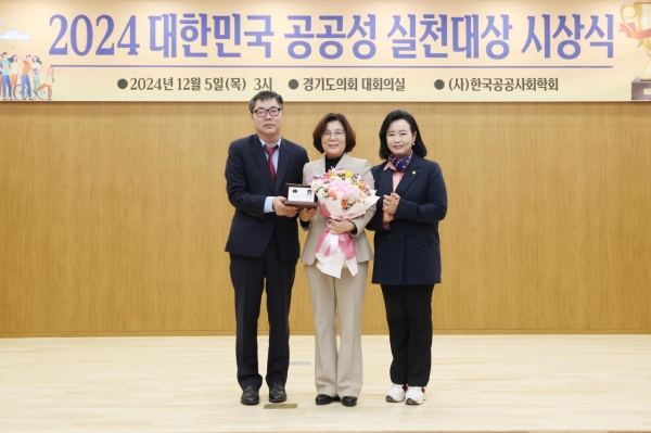 한편 공공성실천대상은 ㈔한국공공사회학회 주관으로 공공성 강화를 위해 정책을 개발하고 지속적으로 실천해 온 자치단체장, 광역 및 기초의원 등을 선정해 수여하는 상이다.
