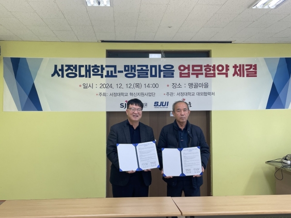 맹골마을에서 진행된 협약식은 백종하 맹골마을영농조합법인 위원장과 위상배 서정대학교 혁신지원사업단장 등 10여명이 참석했으며 최근 학령인구 급감과 산업·사회 변화에 대응한 교육 프로그램 연계의 필요성에 공감해 상호 협력하고자 이루어졌다.