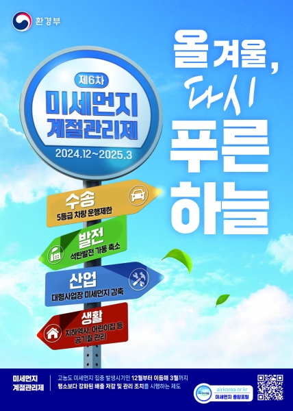 양애순 환경관리과장은 “계절관리제가 성공적으로 추진될 수 있도록 시민들의 적극적인 협조를 바란다”며 “고농도 미세먼지를 줄이기 위한 분야별 저감 대책을 적극적으로 추진해 쾌적한 대기환경 조성과 시민들의 건강 보호를 위해 최선을 다하겠다”고 당부했다.