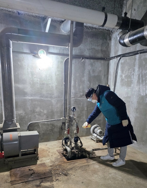 지하 보일러실에서는 휴대용 소독기를 이용한 연무 소독을 하고 집수정과 정화조에는 유충구제제를 살포할 예정이다.