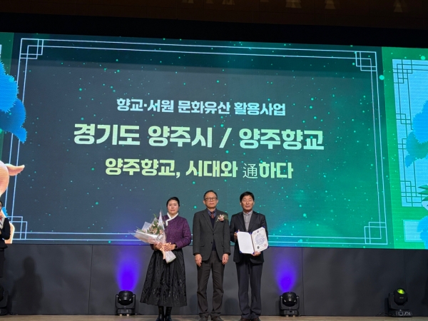 [금요저널] 양주시가 19일 ‘대전DDC컨벤션센터’에서 열린 ‘2024년 우리고장 국가유산 활용 우수사업’ 시상식에서 ‘양주향교, 시대와 通하다’ 가 우수사업으로 선정되는 영예를 안았다고 밝혔다.